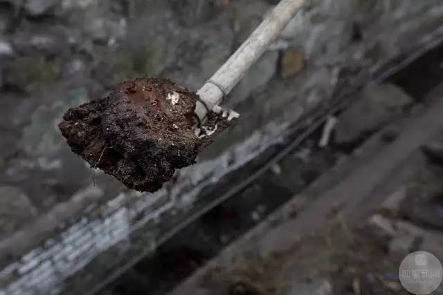 松汀村民毛温秀,今年60岁,他背着箩筐,手拿铲子去捡焦炭。他以此为生。