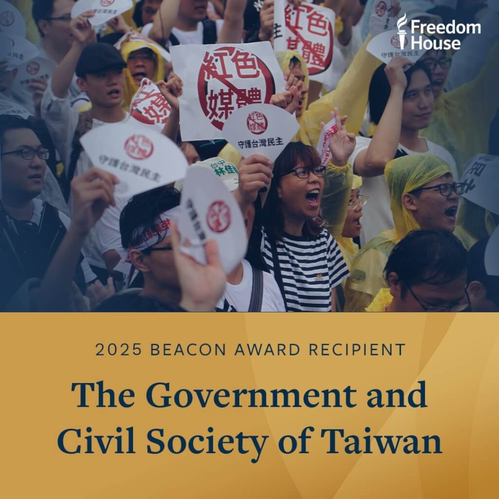 中共施壓下力護民主 台灣獲頒自由之家首屆燈塔獎