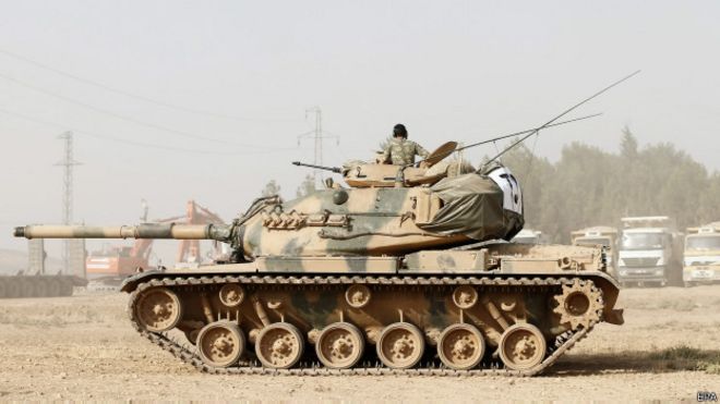土耳其派出了约十多辆坦克越过边境进入叙利亚,之后并用小货车将数百名土耳其支持的叙利亚自由军派别的武装战士运入叙利亚。