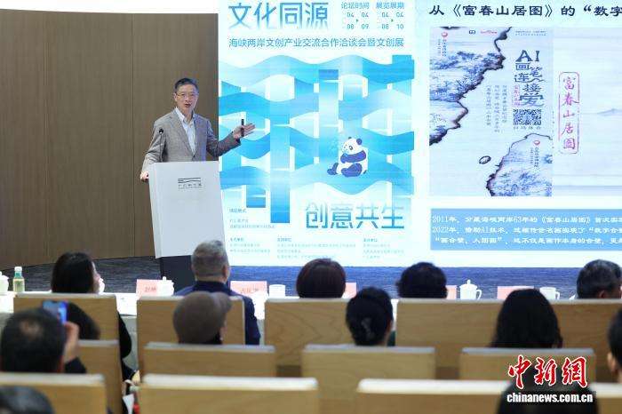 海峡两岸文创产业交流合作洽谈会暨文创展在成都启幕 图为台湾文创业者刘永逸作主题分享。 4月8日,“文化同源·创意共生”海峡两岸文创产业交流合作洽谈会暨文创展在四川成都启幕。来自海峡两岸的专家学者、文创从业者、设计师及文化机构代表齐聚一堂,围绕中华文化传承、文创IP开发、产业合作转化等议题展开交流,共探两岸文创合作新路径。 图为中国公共关系协会国际与港澳台交流合作专委会主任、中国传媒大学媒介与公共事务研究院副院长、台湾传媒研究中心主任安峰山作分享。 图为海峡两岸文创产业交流合作洽谈会暨文创展开幕式现场。