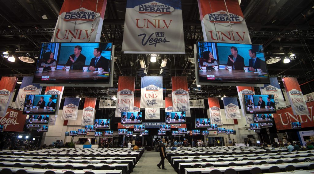特朗普和希拉莉的第三场辩论于10月19日在内华达大学拉斯维加斯分校举行。其他两名候选人因为无法达到参加辩论所需门槛——15%民意调查支持率,而未能参加辩论。