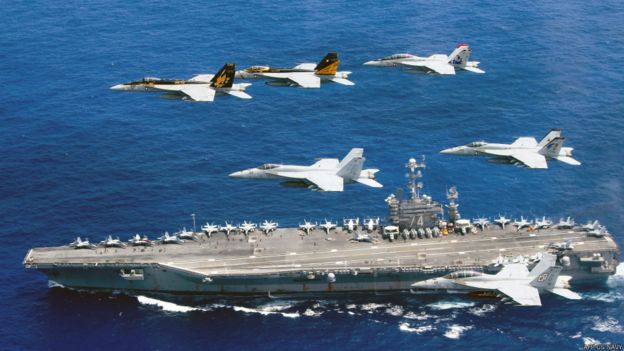 在菲律宾海巡航的美国航空母舰“斯坦尼斯号