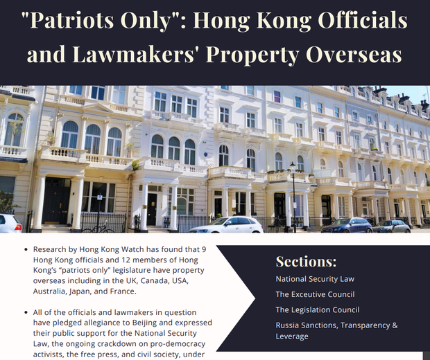 联署信引述总部设于伦敦的非政府组织“香港监察”(Hong Kong Watch)的报告,指有5名香港官员和6名香港立法会议员在英国持有物业,而他们都持续打压香港人权。